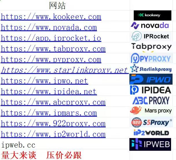 全球各大品牌动态流量IP/移动流量IP代充,全网最低价,欢迎比价。